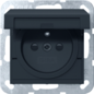 Gira Systeem 55 wandcontactdoos (wcd schakelmat.), zwart, uitvoering overig, aardcontact rond, 1 actieve contacten (rond), 1 eenheid, 1 modules (bij modulair sys, 1 fasen, aansluitwijze steekklem, met klapdeksel, met verhoogde aanraakbeveiliging