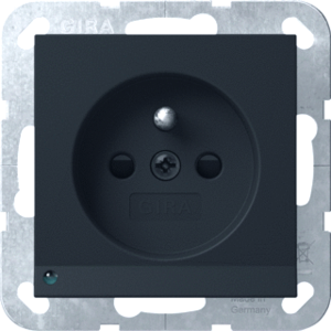 Gira Systeem 55 wandcontactdoos (wcd schakelmat.), zwart, uitvoering overig, aardcontact rond, 1 actieve contacten (rond), met signaallamp, 1 eenheid, 1 modules (bij modulair sys, 2 fasen, aansluitwijze steekklem, met verhoogde aanraakbeveiliging, met oriƫntatieverlichting