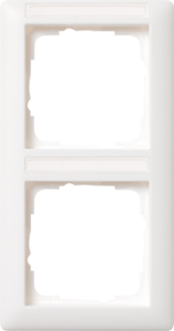 Gira Standaard 55 afdekraam schakelmateriaal, kunststof, wit, (bxhxd) 15.1x80.003x10.82mm, uitvoering oppervlakte mat, variant zuiver wit, montagerichting verticaal, geschikt voor wandgoot, tekstveld/beschrijvingsvlak, 2 eenheden, beschermingsgraad (IP) IP20, 2 eenheden horizontaal, RAL-nummer 9010,