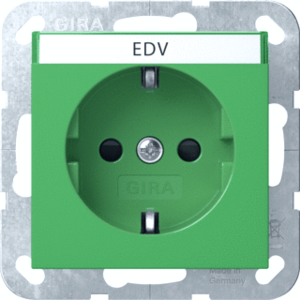 Gira Systeem 55 wandcontactdoos (wcd schakelmat.), groen, uitvoering contactdoos CEE 7/3 (type, aardcontact overig, 1 eenheid, 1 modules (bij modulair sys, 1 fasen, opdruk/indicatie overig, aansluitwijze steekklem, met verhoogde aanraakbeveiliging, tekstveld/beschrijvingsvlak