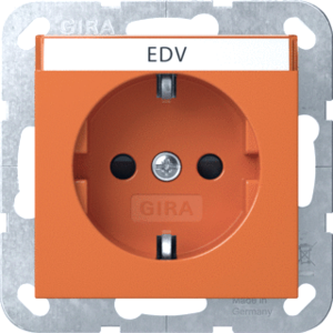 Gira Systeem 55 wandcontactdoos (wcd schakelmat.), oranje, uitvoering contactdoos CEE 7/3 (type, aardcontact overig, 1 eenheid, 1 modules (bij modulair sys, 1 fasen, opdruk/indicatie overig, aansluitwijze steekklem, met verhoogde aanraakbeveiliging, tekstveld/beschrijvingsvlak