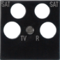 Gira Systeem 55 inzetplaat schakelmateriaal, kunststof, zwart, gebruik satelliet, samenstelling centraalplaat, inbouw (stucwerk), variant zwart, 4 aansluitingen, beschermingsgraad (IP) IP20, halogeenvrij, kwaliteit thermoplast