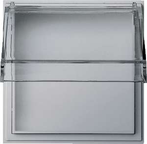 Gira TX44 overgangsafdekplaat schakelmat., aluminium, uitvoering vierkant gat, met klapdeksel, afmetingen VK50/RD50, beschermingsgraad (IP) IP22, schakelmateriaalbreedte 55mm, schakelmateriaalhoogte 55mm, slagvast, transparant deksel