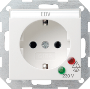 Gira Systeem 55 wandcontactdoos (wcd schakelmat.), wit, uitvoering contactdoos CEE 7/3 (type, aardcontact overig, met signaallamp, 1 eenheid, 1 modules (bij modulair sys, opdruk/indicatie computervoeding, aansluitwijze steekklem, RAL-nummer 9010, met functieverlichting, overspanningsbeveiliging