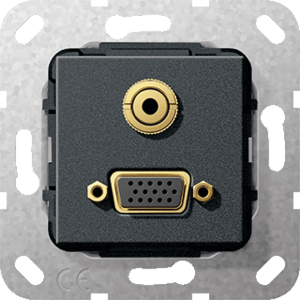Gira multi data-com. schakelmat., thermoplast, zwart, aansluitwijze kabel, uitvoering oppervlakte mat, 1 jack 3,5 mm aansluitingen, 1 VGA connectoren, halogeenvrij