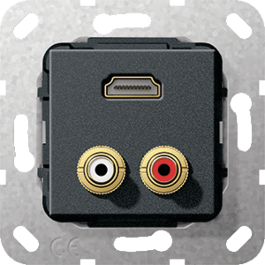 Gira multi data-com. schakelmat., thermoplast, zwart, aansluitwijze bus, uitvoering oppervlakte mat, 1 cinch-audio aansluitingen, 1 HDMI aansluitingen, halogeenvrij