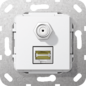 Gira multi data-com. schakelmat., thermoplast, zuiver wit, aansluitwijze bus, uitvoering oppervlakte glanzend, 1 RJ45 aansluitingen, 1 Sat F aansluitingen, halogeenvrij