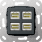 Gira multi data-com. schakelmat., thermoplast, zwart, aansluitwijze bus, uitvoering oppervlakte mat, 4 RJ45 aansluitingen, halogeenvrij