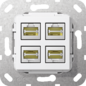 Gira multi data-com. schakelmat., thermoplast, zuiver wit, aansluitwijze LSA-Plus, uitvoering oppervlakte glanzend, 4 RJ45 aansluitingen, halogeenvrij