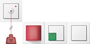 Gira 834 MiVa E2 miva schakelmateriaal, uitvoering mindervalide toilet-set, inbouw (U40) inbouwdoos, incl. geruststellampje LED, bedieningsknop rood/groen, variant afdekplaat zuiver wit, uitvoering kamerlamp gloeilamp