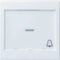 Gira Systeem 55 bed.element / centr.pl. schakelmat., kunststof, wit, uitvoering enkele wip, gebruik schakelaar/drukker, uitvoering oppervlakte mat, opdruk/indicatie symbool"bel", beschermingsgraad (IP) IP20, RAL-nummer 9010, met indicatieveld, halogeenvrij, lens transparant, kwaliteit thermoplast,