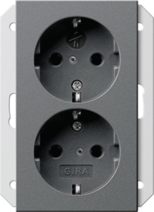 Gira Systeem 55 wandcontactdoos (wcd schakelmat.), antraciet, uitvoering contactdoos CEE 7/3 (type, aardcontact overig, 2 eenheden, 1 modules (bij modulair sys, aansluitwijze overig, met verhoogde aanraakbeveiliging