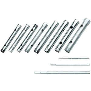 Set met de meest gangbare maten Vervaardigd volgens DIN 896, vorm B, ISO 2236, ISO 1085 Met holle as, van stalen buis, DIN 2391 naadloos, gehard, in C35-materiaal, verchroomd Inhoud: 26 R 6x7 8x9 10x11 12x13 14x15 16x17 18x19 20x22 21x23 24x27 25x28 30x32 mm 26 RS 1 2 3