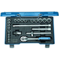 Met bedieningsgereedschap in Gedore vanadiumstaal 31CrV3 Assortiment U-3 met omkeerbare ratel met extra fijne vertanding Assortiment U-10 met stevige omkeerbare ratel met hefboom In koffer van blauw Gedore staal