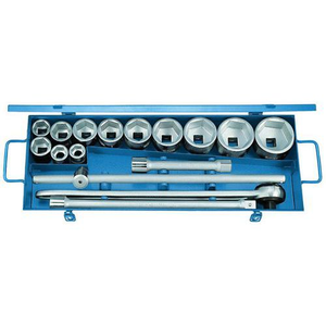 Dopsleutelset 3/4 16-delig, zeskant, 22-60 mm 32GM/D32FMU, Aantal stuks: 16, Type nr.: 6281150, Gereedschapsset: Gereedschapsset, Materiaal: Chroom, Schroef uitsparing: Binnenzeskant, Gewicht: 15800 g, Rijkantje: 3/4, Hoogte casette: 80 mm, Breedte casette: 555 mm, Diepte casette: 230 mm