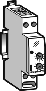 Legrand LEXIC DIN tijdrelais, (bxdxh) 17.5x66x83mm, tijdbereik 0.1 - 360000s, functie afvalvertragend, bediening op afstand mogelijk, 1 uitgangen, vertraagd, ver, nom. stuurspanning bij DC 10.8 - 253V, nom. stuurspanning bij AC 50 Hz 10.8 - 253V, 1 uitgangen, vertraagd, wis, DRA (DIN-rail adapter)