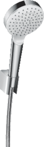 Hansgrohe Crometta 1jet handdouche badset, kunststof, met wandhouder, 1 straalsoorten, antikalksysteem, met uitneembaar zeefje, met slang, accentkleur wit, min. mengwaterverbruik tappunt 9l/min, diameter douchekop 100mm, volumestroomklasse Z (4.2-6.9 l/min.), lengte doucheslang 1250mm,