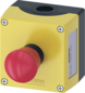 Siemens drukknopkast compleet, geschikt voor noodstop, behuizing kunststof, beschermingsgraad (IP) IP67/IP69K, 1 verbreekcontact, 1 commandoposities, 1 paddestoel drukknoppen, bovendeel behuizing geel, beschermingsgraad (NEMA) 13, nom. stuurspanning bij AC 50 Hz 5 - 500V,