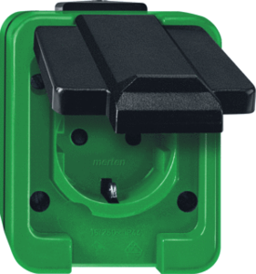 Schneider Electric M AGRAR wandcontactdoos (wcd schakelmat.), groen, uitvoering contactdoos CEE 7/3 (type, 1 actieve contacten (rond), 1 eenheid, 1 fasen, aansluitwijze schroefklem, met klapdeksel, RAL-nummer 6029, geïsoleerde montage