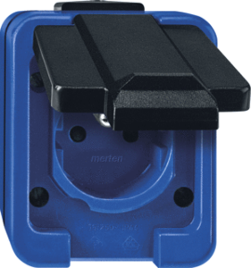 Schneider Electric M SLAGVAST wandcontactdoos (wcd schakelmat.), blauw, uitvoering contactdoos CEE 7/3 (type, 2 actieve contacten (rond), 1 eenheid, 1 fasen, aansluitwijze schroefklem, met klapdeksel, met verhoogde aanraakbeveiliging, tekstveld/beschrijvingsvlak, RAL-nummer 5002,