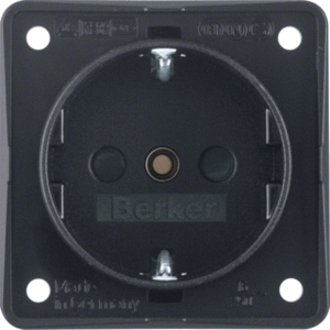 Hager Berker Integro wandcontactdoos (wcd schakelmat.), zwart, uitvoering contactdoos CEE 7/3 (type, 2 actieve contacten (rond), 1 eenheid, 1 fasen, aansluitwijze schroefklem, met verhoogde aanraakbeveiliging, RAL-nummer 9011, geïsoleerde montage