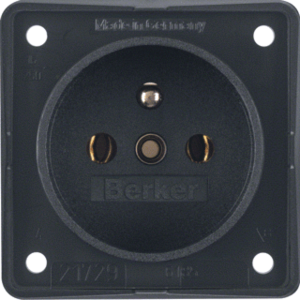 Hager Berker Integro wandcontactdoos (wcd schakelmat.), zwart, uitvoering aardingspen, 2 actieve contacten (rond), 1 eenheid, 1 fasen, aansluitwijze schroefklem, RAL-nummer 9011, geïsoleerde montage