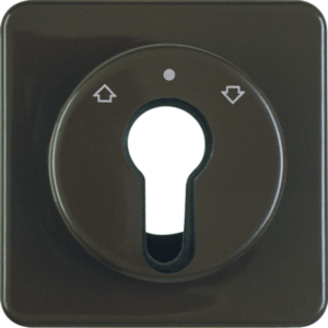 Hager Berker bed.element / centr.pl. schakelmat., kunststof, bruin, (bxhxd) 64.5x64.5x23mm, uitvoering sleutel, gebruik jaloezie, uitvoering oppervlakte glanzend, opdruk/indicatie diverse symbolen, beschermingsgraad (IP) IP44, RAL-nummer 8011, halogeenvrij, kwaliteit thermoplast,