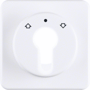 Hager Berker bed.element / centr.pl. schakelmat., kunststof, wit, (bxhxd) 64.5x64.5x23mm, uitvoering sleutel, gebruik jaloezie, uitvoering oppervlakte glanzend, opdruk/indicatie diverse symbolen, beschermingsgraad (IP) IP44, RAL-nummer 9010, halogeenvrij, kwaliteit thermoplast,