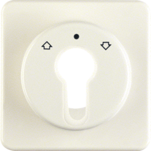 Hager Berker bed.element / centr.pl. schakelmat., kunststof, wit, (bxhxd) 64.5x64.5x23mm, uitvoering sleutel, gebruik jaloezie, uitvoering oppervlakte glanzend, opdruk/indicatie diverse symbolen, beschermingsgraad (IP) IP44, RAL-nummer 1013, halogeenvrij, kwaliteit thermoplast,