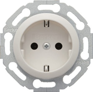 Hager Berker 1930/Glas wandcontactdoos (wcd schakelmat.), wit, uitvoering contactdoos CEE 7/3 (type, 2 actieve contacten (rond), 1 eenheid, 1 fasen, aansluitwijze steekklem, RAL-nummer 9010, geïsoleerde montage