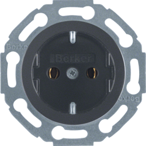 Hager Berker 1930/Glas wandcontactdoos (wcd schakelmat.), zwart, uitvoering contactdoos CEE 7/3 (type, 2 actieve contacten (rond), 1 eenheid, 1 fasen, aansluitwijze schroefklem, RAL-nummer 9005, geïsoleerde montage