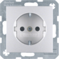 Hager Berker S.1/B.3/B.7 wandcontactdoos (wcd schakelmat.), aluminium, uitvoering contactdoos CEE 7/3 (type, 2 actieve contacten (rond), 1 eenheid, 1 fasen, aansluitwijze steekklem, met verhoogde aanraakbeveiliging, RAL-nummer 9006, metallic, geïsoleerde montage