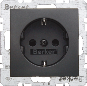 Hager Berker S.1/B.3/B.7 wandcontactdoos (wcd schakelmat.), antraciet, uitvoering contactdoos CEE 7/3 (type, 2 actieve contacten (rond), 1 eenheid, 1 fasen, aansluitwijze steekklem, met verhoogde aanraakbeveiliging, RAL-nummer 7021, geïsoleerde montage