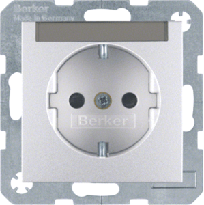 Hager Berker S.1/B.3/B.7 wandcontactdoos (wcd schakelmat.), aluminium, uitvoering contactdoos CEE 7/3 (type, 2 actieve contacten (rond), 1 eenheid, 1 fasen, aansluitwijze steekklem, met verhoogde aanraakbeveiliging, tekstveld/beschrijvingsvlak, RAL-nummer 9006, geïsoleerde montage