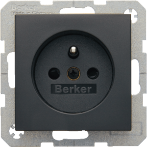 Hager Berker S.1/B.3/B.7 wandcontactdoos (wcd schakelmat.), antraciet, uitvoering aardingspen, 2 actieve contacten (rond), 1 eenheid, 1 fasen, aansluitwijze schroefklem, met verhoogde aanraakbeveiliging, RAL-nummer 7021, geïsoleerde montage