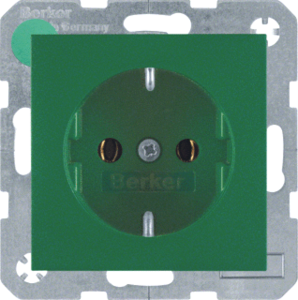 Hager Berker S.1/B.3/B.7 wandcontactdoos (wcd schakelmat.), groen, uitvoering contactdoos CEE 7/3 (type, 2 actieve contacten (rond), 1 eenheid, 1 fasen, aansluitwijze schroefklem, RAL-nummer 6029, geïsoleerde montage