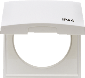 Hager Berker Integro afdekraam schakelmateriaal, kunststof, wit, (bxhxd) 59.5x59.5x17.9mm, uitvoering oppervlakte glanzend, montagerichting horizontaal en verticaal, geschikt voor wandgoot, 1 eenheid, beschermingsgraad (IP) IP44, met klapdeksel, 1 eenheden horizontaal, slagvastheid IK02,