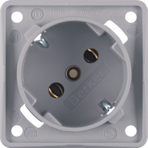 Hager Berker Integro wandcontactdoos (wcd schakelmat.), grijs, uitvoering contactdoos CEE 7/3 (type, 2 actieve contacten (rond), 1 eenheid, 1 fasen, aansluitwijze schroefklem, RAL-nummer 7038, geïsoleerde montage