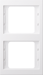 Hager Berker K.1 afdekraam schakelmateriaal, kunststof, wit, (bxhxd) 87x151.5x9.9mm, uitvoering oppervlakte glanzend, variant polarwit, montagerichting verticaal, geschikt voor wandgoot, 2 eenheden, beschermingsgraad (IP) IP20, 1 eenheden horizontaal, slagvastheid IK05, RAL-nummer 9010,
