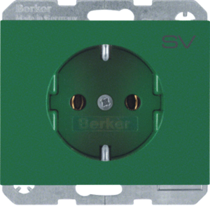 Hager Berker K.1/K.5 wandcontactdoos (wcd schakelmat.), groen, uitvoering contactdoos CEE 7/3 (type, 2 actieve contacten (rond), 1 eenheid, 1 fasen, opdruk/indicatie SV, aansluitwijze steekklem, RAL-nummer 6029, geïsoleerde montage