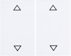 Hager Berker K.1/K.5 bed.element / centr.pl. schakelmat., kunststof, wit, (bxhxd) 71x55x25mm, uitvoering 2-delige wip, gebruik jaloezie, uitvoering oppervlakte glanzend, opdruk/indicatie symbool"pijlen", beschermingsgraad (IP) IP20, RAL-nummer 9010, geschikt voor bussysteem-toetsaansl, halogeenvrij,