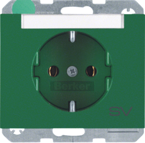 Hager Berker K.1/K.5 wandcontactdoos (wcd schakelmat.), groen, uitvoering contactdoos CEE 7/3 (type, 2 actieve contacten (rond), 1 eenheid, 1 fasen, opdruk/indicatie SV, aansluitwijze steekklem, tekstveld/beschrijvingsvlak, RAL-nummer 6029, geïsoleerde montage