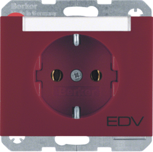 Hager Berker K.1/K.5 wandcontactdoos (wcd schakelmat.), rood, uitvoering contactdoos CEE 7/3 (type, 2 actieve contacten (rond), 1 eenheid, 1 fasen, opdruk/indicatie computervoeding, aansluitwijze steekklem, tekstveld/beschrijvingsvlak, RAL-nummer 3003, geïsoleerde montage