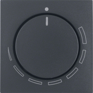 Hager Berker S.1/B.3/B.7 bed.element / centr.pl. schakelmat., kunststof, antraciet, (bxhxd) 56x56x16.3mm, uitvoering draaiknop, gebruik overig, uitvoering oppervlakte mat, opdruk/indicatie diverse symbolen, beschermingsgraad (IP) IP20, RAL-nummer 7016, halogeenvrij, kwaliteit thermoplast,