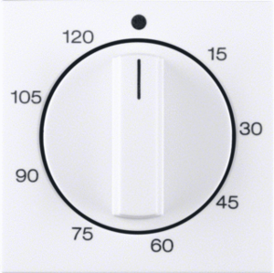 Hager Berker S.1/B.3/B.7 bed.element / centr.pl. schakelmat., kunststof, wit, (bxhxd) 55.5x55.5x20mm, uitvoering draaiknop, gebruik tijdschakelaar, uitvoering oppervlakte glanzend, opdruk/indicatie diverse symbolen, beschermingsgraad (IP) IP20, RAL-nummer 9010, halogeenvrij, kwaliteit duroplast,