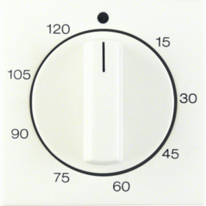 Hager Berker S.1/B.3/B.7 bed.element / centr.pl. schakelmat., kunststof, wit, (bxhxd) 55.5x55.5x20mm, uitvoering draaiknop, gebruik tijdschakelaar, uitvoering oppervlakte glanzend, opdruk/indicatie diverse symbolen, beschermingsgraad (IP) IP20, RAL-nummer 1013, halogeenvrij, kwaliteit duroplast,