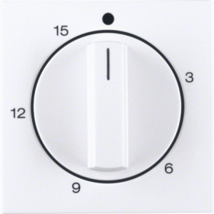 Hager Berker S.1/B.3/B.7 bed.element / centr.pl. schakelmat., kunststof, wit, (bxhxd) 55.5x55.5x20mm, uitvoering draaiknop, gebruik tijdschakelaar, uitvoering oppervlakte glanzend, opdruk/indicatie diverse symbolen, beschermingsgraad (IP) IP20, RAL-nummer 9010, halogeenvrij, kwaliteit duroplast,