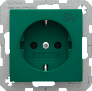 Hager Berker S.1/B.3/B.7 wandcontactdoos (wcd schakelmat.), groen, uitvoering contactdoos CEE 7/3 (type, 2 actieve contacten (rond), 1 eenheid, 1 fasen, opdruk/indicatie SV, aansluitwijze steekklem, RAL-nummer 6029, geïsoleerde montage