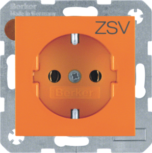 Hager Berker S.1/B.3/B.7 wandcontactdoos (wcd schakelmat.), oranje, uitvoering contactdoos CEE 7/3 (type, 2 actieve contacten (rond), 1 eenheid, 1 fasen, opdruk/indicatie ZSV, aansluitwijze steekklem, RAL-nummer 2003, geïsoleerde montage