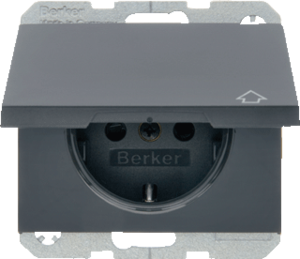 Hager Berker K.1/K.5 wandcontactdoos (wcd schakelmat.), antraciet, uitvoering contactdoos CEE 7/3 (type, 2 actieve contacten (rond), 1 eenheid, 1 fasen, aansluitwijze steekklem, met klapdeksel, met verhoogde aanraakbeveiliging, RAL-nummer 7021, geïsoleerde montage